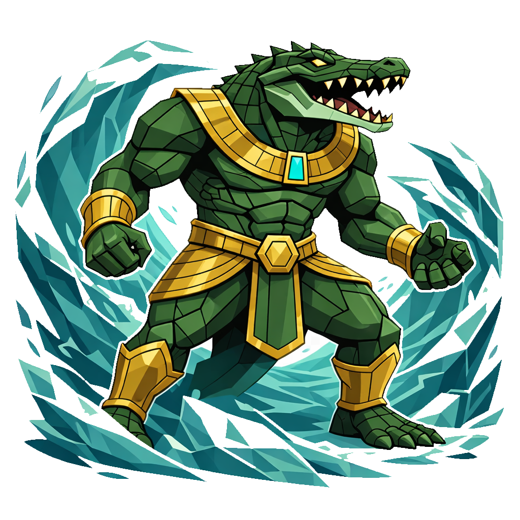 The great crocodile of the Nile — patient, ancient, and perfectly still until the moment he isn't. Sobek doesn't rush. He holds the line, weathering punishment that would destroy lesser gods, and bides his time. When prey steps too close to the water's edge, the explosion of counterpressure is swift, total, and deeply unpleasant for whoever thought he was just standing there.